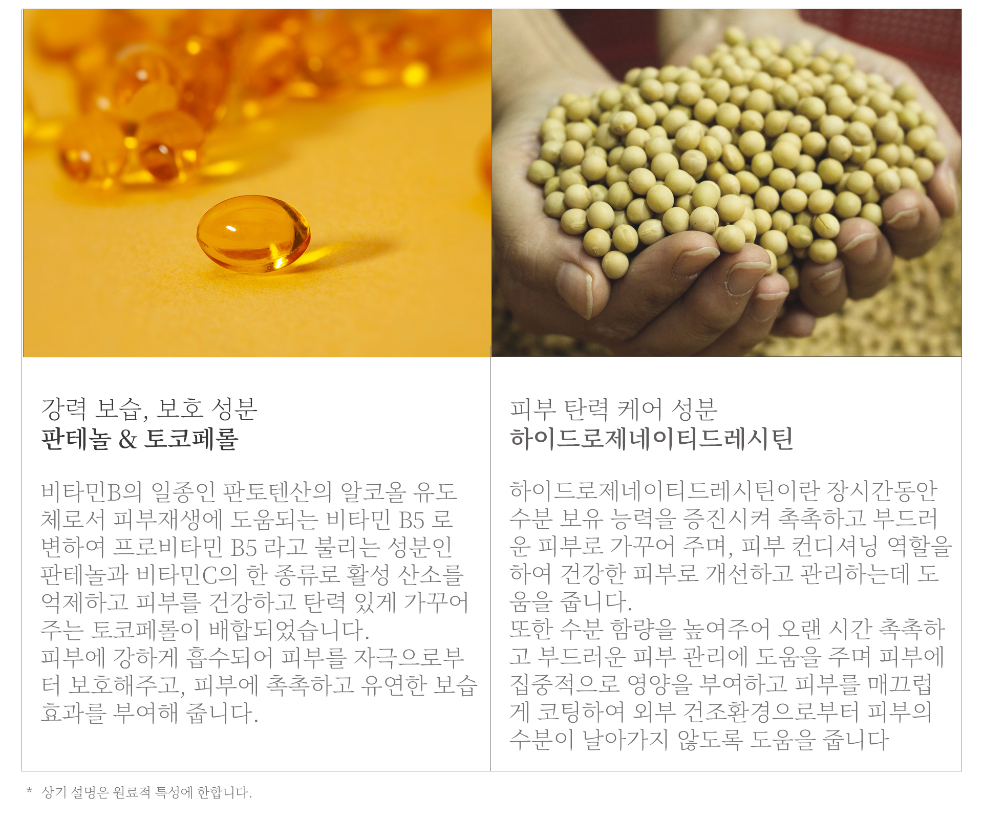 | 촉촉하게 피부 수분 보호막을 형성해주는 초보습 장벽 강화 브라이트닝 크림 부드럽게 펴발려 피부에 빠르게 작용하여 색소침착, 잡티 등 스팟 흔적 부위의 피부톤을 밝혀주고 이마/볼/눈가/팔자/입가 5개 부위의 즉각적인 피부 보습 개선 효과를 부여 피부 장벽 케어에 특화되어 UV에 의해 손상된 피부 장벽은 물론 적외선에 의해 손상된 피부 장벽을 개선 극건조 환경에서의 피부 장벽까지 케어하는 장벽 보호막 크림 |