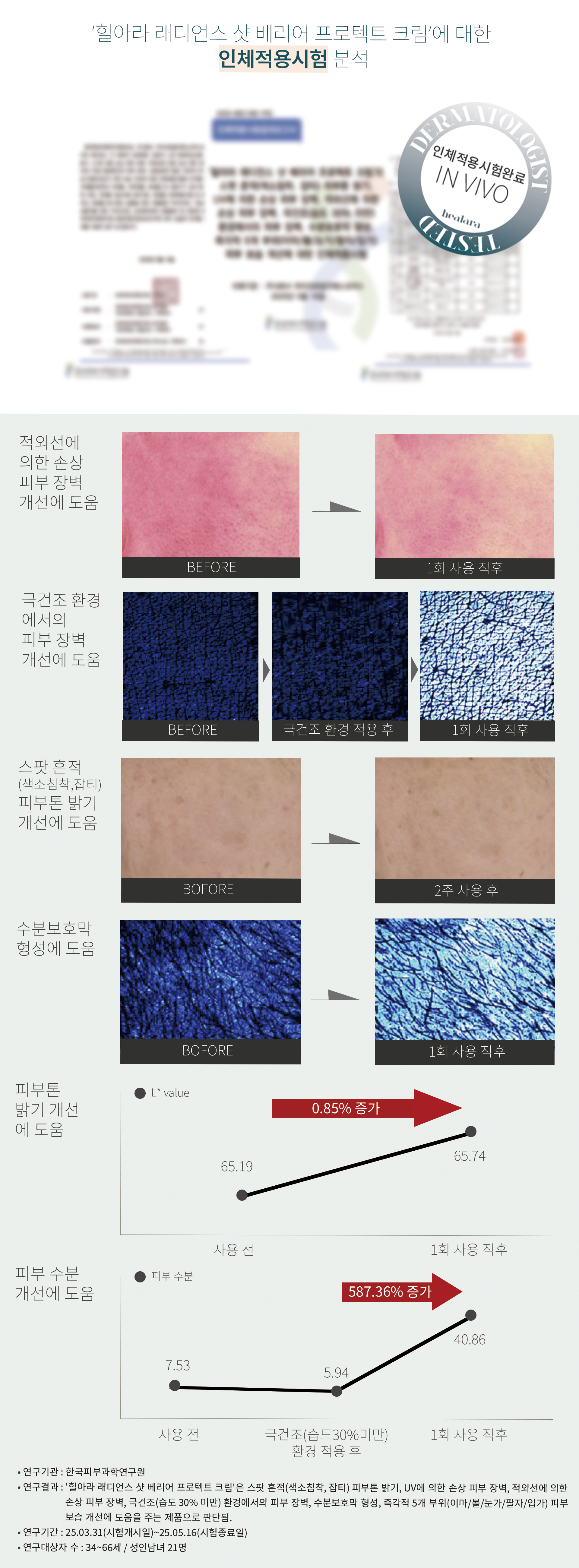 래디언스 샷 베리어 프로텍트 크림의 놀라운 임상 결과 |